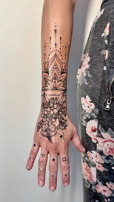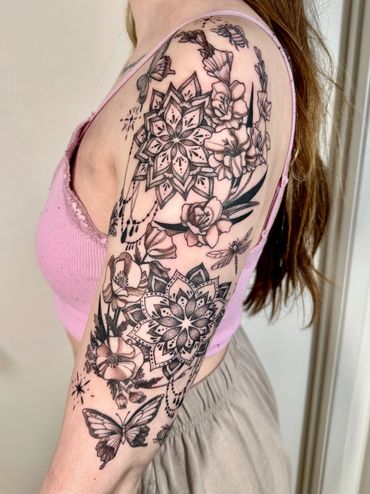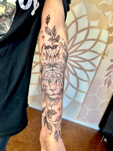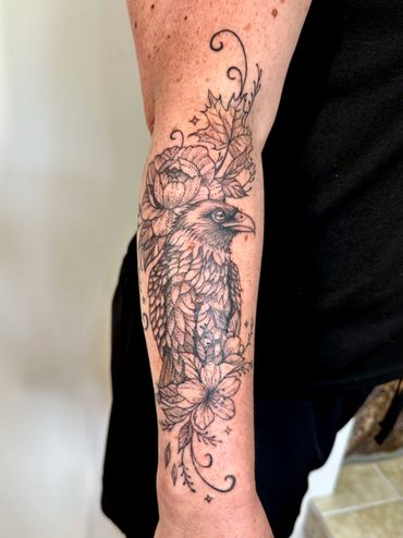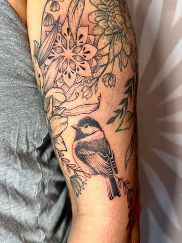 Kristin creates tattoos inspired by the natural world, including flowers, animals, geometric patterns + mandalas. Her primary styles are fine line and black + grey.